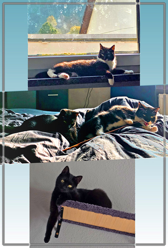 Vielen Dank für die Zusendung dieser Aufnahmen von unseren vermittelten Kätzchen! Wir grüßen herzlich zurück und wünschen weiterhin ein traumhaftes Leben! |