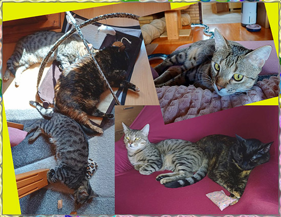 an bei paar Bilder von Terry´s die inzwischen Princess Flummy heißt da sie die ganze Zeit wie ein Flummy durch die Gegend hüpft mit ihren 3 Beinen und auch vor Katzenhochstamm hochzuklettern kein Halt macht und durch die Gegend tobt und spielt.