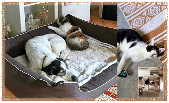 Ratzfatz haben die beiden kürzlich vermittelten Katzen (Katze & Kater), die sich hier kennen gelernt und sogleich Freundschaft geschlossen haben, bei Ihrer neuen Familie die Betten, das Sofa, die Wäschekammer und was sonst noch so alles zum Spielen und Relaxen zur Verfügung steht, erobert und in Beschlag genommen und sehen so richtig glücklich aus!