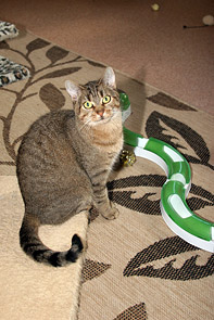 Gegen Tiffy wirkt man schon ziemlich grobmotorisch. Wie eine Pantherin läuft und springt Tiffy geschmeidig umher, auch wenn das hier gerade nicht der Fall ist. Sie ist sehr verspielt und wer sich mit ihr beschäftigt, muss ordentlich wach und schnell sein. Gerade jetzt braucht sie viel Beschäftigung, um sich konstant weiter entwickeln zu können.